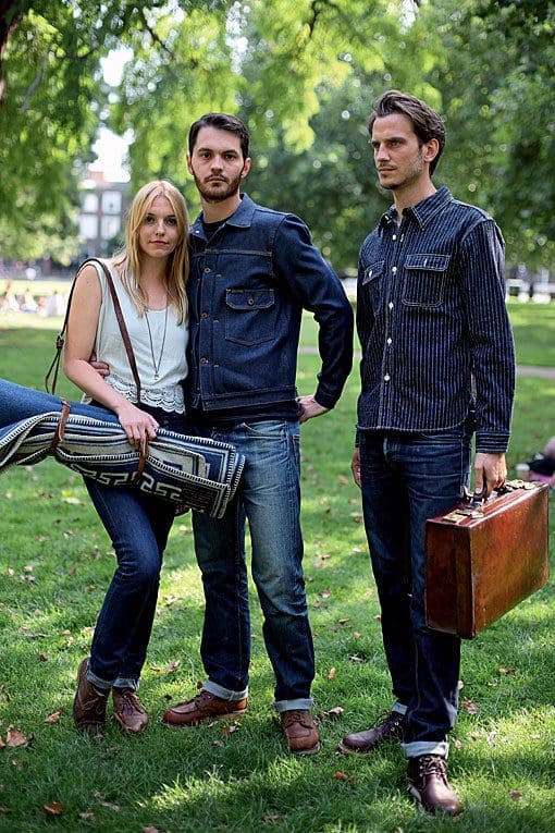 left to right: Robyn: Railcar Fine Goods Viper jeans; Michael: Ande Whall Denim Co. jeans, Indigofera Jeans jacket; Aaron: Hiut Denim jeans, Flat Head Wabash shirt.© Horst Friedrichs / Prestel