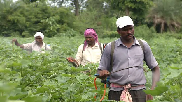 Cotton seeds in India are controlled by one company. Monsanto. 95% of the industry actually. Monsanto own the technology behind Bt [bacillus thuringiensis] cotton which comes from a genetically modified sterile seed resistant to the boll worm. They license this technology to a host of seed companies in India. The seed’s sterility means farmers can’t reuse them. From a box of seeds that costs 950 rupees, 180 rupees goes to Monsanto. Farmers are also instructed to buy chemical insecticides and pesticides to keep other creepy crawlies away. One of our characters, a farmer called Hanuman, had to borrow 80,000 rupees to farm this year. He’s spent 70,000 rupees on seeds and chemicals. He has to find the money to school his kids and feed his family with the remaining 10,000. When I left him, he was talking about borrowing more money to buy more chemicals which will probably give him long term health problems. When he goes to sell his cotton, he fears he won’t get a good price nor will he get a good yield as the rains came late. To top up his income, Hanuman works on other people’s farms for 100 rupees a day.