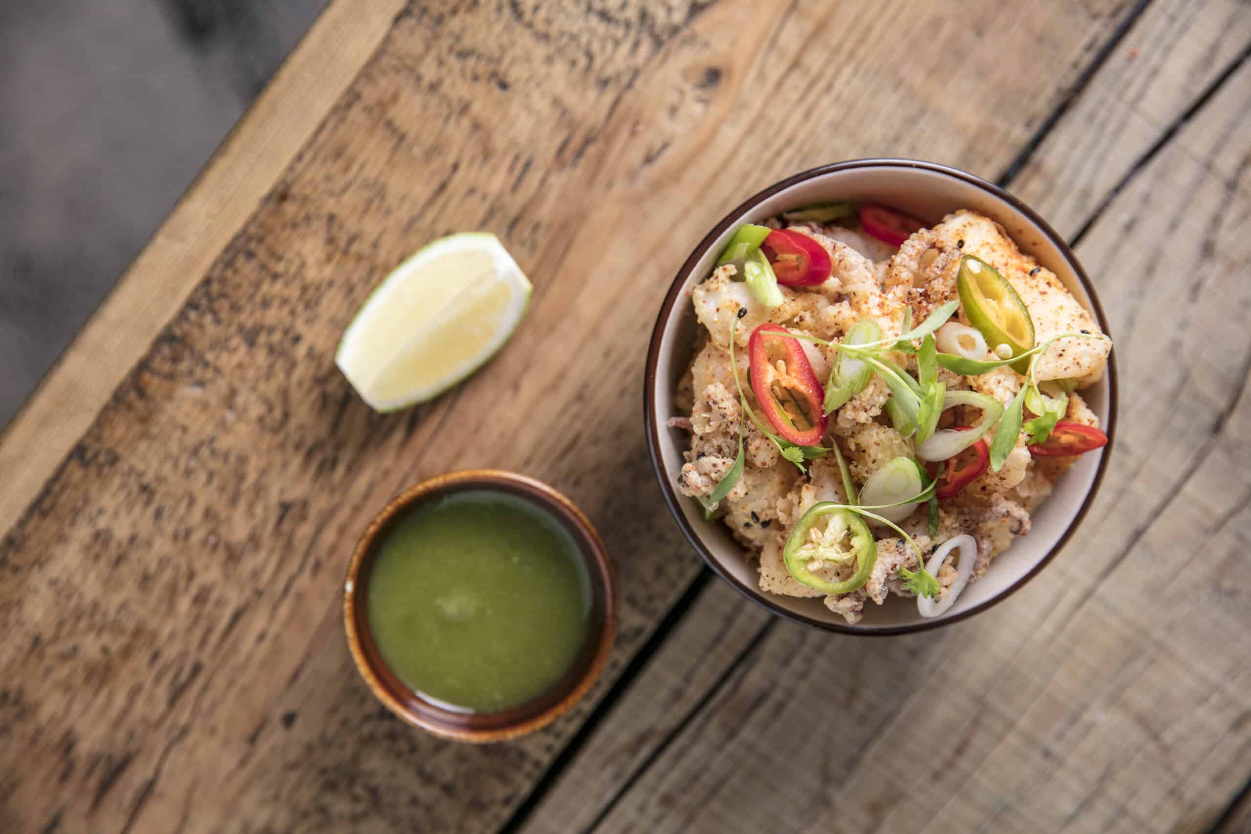 Crispy Squid, lime, green Mango & sweet chilli dip (3)