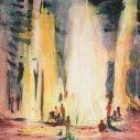 Human congregation and a synergy with the landscape typify the scenes depicted. The masterful ‘High and Low’ depicts figures congregating on rooftops and in parks, while in ‘BBQ sur l’herbe’ figures actually merge into one another, a physical expression of the pervading sense of human interconnectedness that unites the works on show.