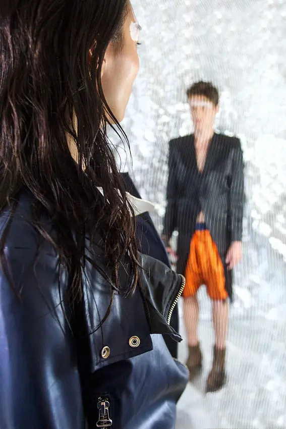 Je-t’aime by Taner Tumkaya: Anita wears white chest piece by Mother of London, blue leather jacket by Harold Kensington. Mark wears coat by Glauber & Biermans, black boots by Old Gringo