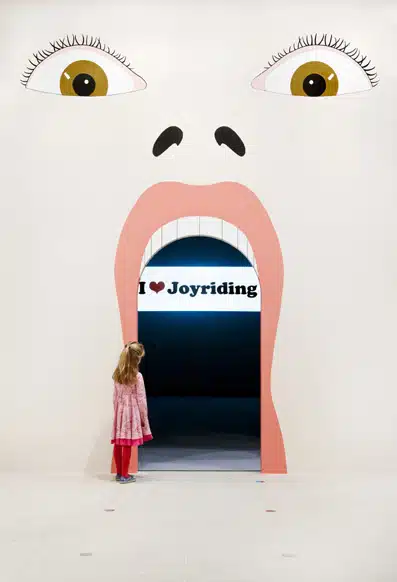 Among many ideas which couldn’t be captured in an exhibition space was his Joyriding project. Joyriding was rife, and there was “moral panic”, so the obvious thing for Deller to do was go around town gluing I ♥ Joyriding stickers onto car bumpers. He even stuck one on a police car. While he condemned the act of joyriding itself, he saw good in the energy and ingenuity that fuelled it. If the exhibition is a celebration of the joy of people, it’s worth taking a minute to celebrate the energy and ingenuity of this most unusual artist.