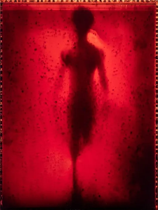 Rare Ongoing Ion, 2023, 22.5 x 30 x 3_, blood, ink, plexiglass, UV resin