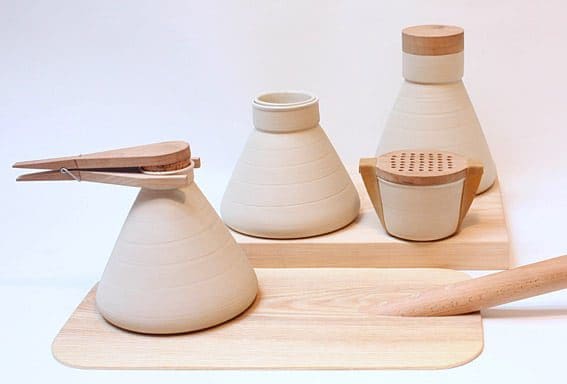 Speaking to me about his work Hartley, who started pottery lessons as an eight year old, said, “Well, I’ve always been interested in making things and in food, and it seems to me that there is no difference between them; you use ingredients and processes to create both food and things. The food that is the most simple and accessible is bread, sour dough bread particularly where you use just three ingredients: salt, flour, water. So I explored this concept, using simple ingredients to create the kind of objects I liked, and I use just three ingredients: wood, clay and cloth. When you’re making bread you have to leave the dough to allow it to double in size before putting it in the oven and finishing the process – it’s like a transformation, and that’s another area I’ve explored, making objects that have more than one use.”