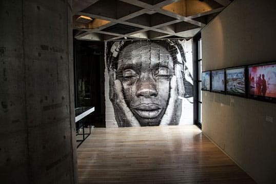 This is the first international retrospective of the French artist JR’s work. The exhibition is in chronological order – each floor of the gallery is dedicated to a different project.
