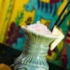 Now sitting proudly on Curtain Street with all its doors thrown open, Cottons looks like a veranda to a different world. Caribbean kitsch would be a good way to describe its interior. Colourful walls covered in murals of straw huts and smiling villagers, netted glass bottles and hanging model boats, create a kind of cartoony expression of life across the Atlantic.