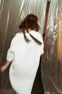 Anne Claire wears dress by Reality Studio, bandana stylists own
