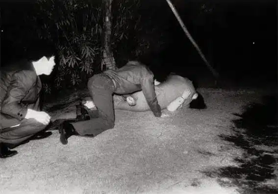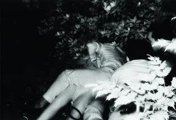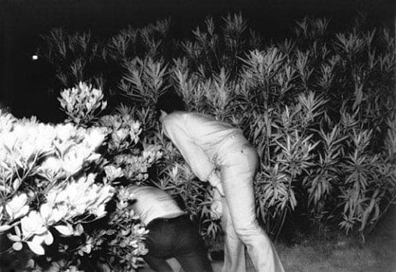 The idea of the viewer taking part in Yoshiyuki’s work doesn’t stop there! The Park is exhibited in a pitch black room where viewers have to navigate their way through the exhibition with a torch. Again the viewer becomes actively involved with every step of their journey through the park, as one discovers yet more exhibitionist groups and oversexed couples with the flash light. The portrayal of lovemaking is absent in these graphic and somewhat brutal scenes of humans fornicating in the bushes. As you uncover the photographs with the torch you can’t help but feel that you are following in Yoshiyuki’s footsteps as you discover the lustful goings on of The Park as Yoshiyuki found them in the 1970s.