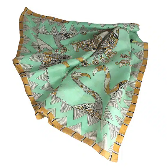 Award winning illustrator meets accessories company devoted to promoting ethical fashion… The outcome? An amazing intricately designed, handcrafted, square, silk scarf going by the name of “My Favourite Bird”… An affordable luxury with a hidden message.