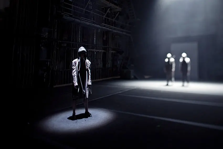 It is dark. Shadows stretch out across the floors depicting distorted silhouettes of strangely shaped headdresses. Garments, frozen in movement, draped over downcast faces, seem to succumb to an uncontrollable and external force.
