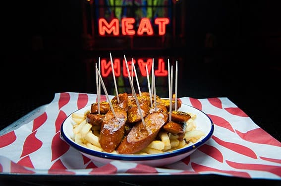 This third ‘static’ offering, brainchild of owners Collins and Papoutsis, arrived without the fanfare of MEAT:liquor and its Covent Garden equivalent, MEAT:market. After all, we know what to expect by now; the brand damn near created the street-food-gone-gourmet trend that’s had Londoners reaching stickily for the kitchen roll like never before. Besides, this is old news… isn’t it all about lobster now? Well, the pair are clearly on a mission (excuse the pun) to prove that their dirty meat offerings remain a force to be reckoned with.