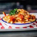 The buffalo shrimp were a crispy, tangy reminder that buffalo sauce and blue cheese work on absolutely anything. That being said, it works better on some things than others, and as tasty as they were I couldn’t help but long for something a bit more chicken-y under the spicy, creamy mess on top. Shrimp is a little delicate for something that powerful. It’s a classic for a reason, so in future don’t mess with mamma’s recipe.