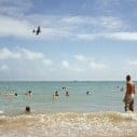 Whilst for aviation enthusiasts the obvious focus is the aircraft, Friend turns her camera onto civilians observing the military spectacle. Divided into two distinct but related groups of images, The Home Front comprises vistas of seaside resorts that form the backdrop to aerial displays, as well as images at closer range depicting visitors to the air shows’ ground level attractions. Taken as a whole, The Home Front might be considered part of a photographic tradition that affectionately documents the British at leisure, from Benjamin Stone’s Festivals, Ceremonies and Customs (1906) to Tony Ray-Jones’ A Day Off (1974). Upon closer inspection, however, Friend’s work reveals a more troubling layer: a view of what she terms ‘war at the point of sale’, and an attention to the overlooked ways in which militarism is reconfigured as entertainment in the civilian sphere.
