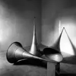 A statue facing a mirror (The Time of Judgement), a narrow gap in between it and the glass, provided an instinctive curiosity too natural to resist. Spectators hopped around it, attempting to view the anterior image as entirely as the posterior; to see what her left hand was doing when viewed from the right and vice versa. With Obelsik, a black wooden circle surrounded the peak. The segment blocked by the obelisk was recreated with the reflection of the opposing side. The over-arching structure made close-by visitors invisible as they crept into the blind spot of reflection. Passers-by who appeared to be within touching distance vanished from the eye line.