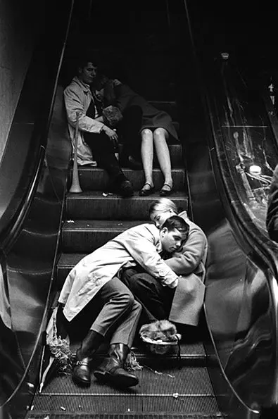 The escalators had stopped, it was late, but despite the likelihood that the last train had already gone Archie and Sally tentatively set off down the metal steps one at a time. At the bottom Archie’s legs gave way and he sank to the floor, taking Sally with him, slipping into a mess of cigarette butts and colourful streamers. “I’m gone,” he sighed, as he fell towards Sally’s shoulder and she rested her head on the back of his neck.