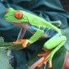 But the best came last. No sooner had we recovered from the incredible view, our guide came cavorting out from the trees with an enormous grin on his face. On his fingertip was a miniscule green tree frog, with bulging eyes of bright orange. For the next ten minutes everything else is forgotten as we marvel at this incredible frog. No wonder he’s always on the cover of National Geographic.
