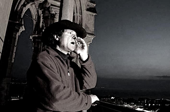 Five nights a week, Mr Renato Häusler, 57, the night watch of the Lausanne Cathedral (Switzerland), calls out the hours from ten to two.