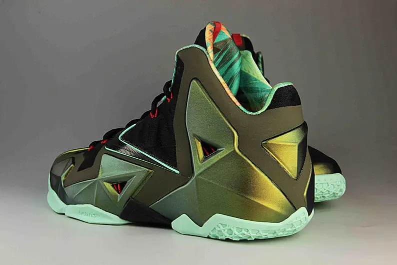 Part of the second installment of Approved Heat at Footlocker, this Nike Lebron XI ‘King of the Jungle’ futuristic colourway hit stores last week.