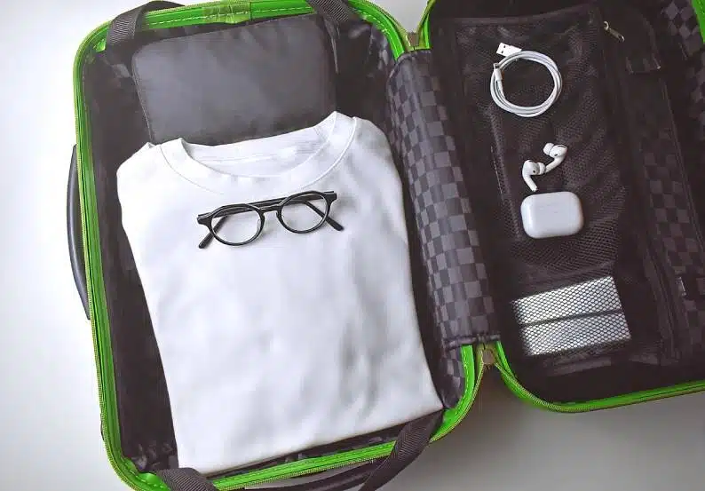Your suitcase space is precious real estate. That’s why the smartest way to pack clothes is choosing versatile, layered outfits you can mix and match. Prioritize light fabrics like moisture-wicking athletic wear that are easily washable and quick to dry. Darker colors hide stains and coordinate well together. Bring extra essentials like socks and underwear.