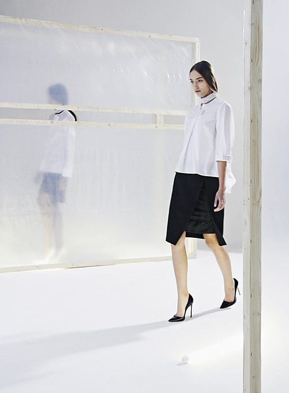 Presenting a quietly beautiful range of intricately detailed and directionally tailored pieces; the collection is fascinatingly both structured yet fluid. Devoid of bright colours the monochromatic palette lets the craftsmanship and sharp contrasts transfix the viewer.