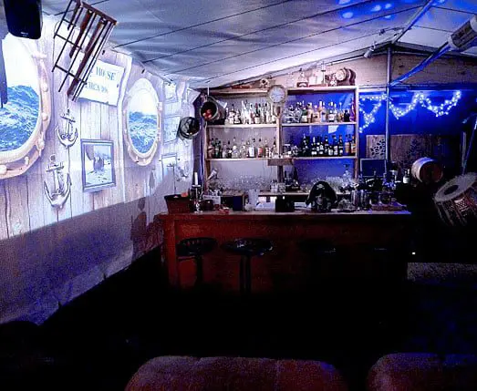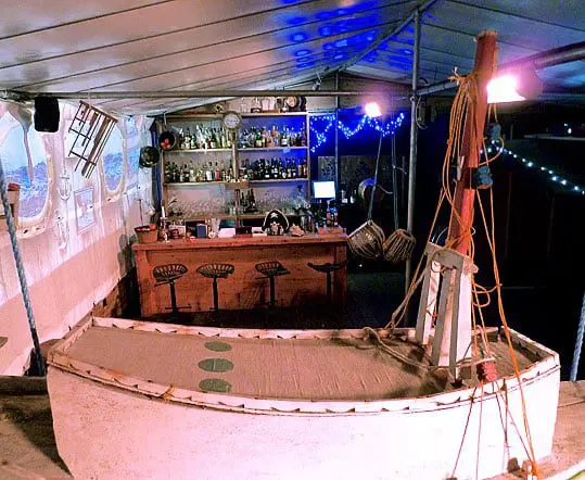 Resembling less of a taciturn Captain Ahab, and more of a gleeful Jack Sparrow, Julian swiftly wraps into the bosom of the venue. Projectors drape the walls with the fresco of an old 1800s steamship that makes you feel as if you’re just pulling out of Nantucket, waiting for the waves to wrap around you. A few slightly gimmicky, but comforting pieces of salt-water paraphernalia hung in rickety fashion around the mocked up galley, a nice touch being a wide selection of board games, including party piece ‘Battleshots’ for the brave; I’ll allow you to fill in the hits and misses. Comfortable, weathered leather seats with generously supplied blankets gave the entire venue a cosy, inclusive feel, complimented by the warmth of the staff themselves.