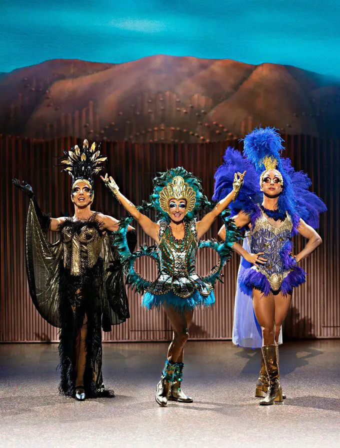 Priscilla, Queen of the Desert the musical is based on the 1994 film that followed three drag queens on a road trip through the Australian outback. If you haven’t seen it put it on your wish list now – it’s an iconic watch, and back in 1994, a surprise worldwide hit. Its portrayal of two drag queens and a transgender woman (played by Terence Stamp) helped to introduce LGBT themes to a mainstream audience. The film won a deserved Oscar for the costumes by Lizzie Gardiner and Tim Chappel, and became a cult classic. Of course it did.