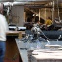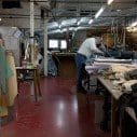 A visit to the Private White V. C. factory reveals the depth of tradition behind this very modern brand. This is no cold, sanitised, technological environment. This is a real, live, rough at the edges working factory. Production is carried out by hugely skilled local craftspeople, using traditional machinery that has been here for years. A tour reveals all the processes used to create a Private White V.C. garment over three floors joined by twisty corridors and narrow stairways. You can see the enormous rolls of fabric, the pattern cutters, the fabric tables, machinists and hand finishing going on right before your eyes. Rails are crammed with garments at different stages of production.