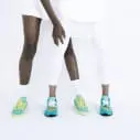 Taking their cues from two iconic PUMA styles, the classic PUMA Suede and the XT2+, which is a much loved favourite from the Trinomic Family, we see the fingers of the cool crowd all over these design. Graphics, a mix of materials and colours or natural fabrics were utilised to create a collection with a theme that is literally cool – with the key colour being a vivid blue warmed with lime green. Add to this mono swirled soles and green mesh, or bright pink and gold leather, or all over prints on the PUMA Suede – and you have an extremely eyecatching graphic collection bound to be popular on the street of the dancefloor.