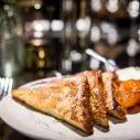Regardless of the drinks, it’s the food that truly impresses, giving the greatest assurance that this is a top restaurant in its own right. Choose two courses for £21, or three for £27, from a selection which floats across the starscape of high-end European cuisine. The brunch dishes, big on eggs and bread, are an excellent way to start. Quaglino’s does particular justice to Eggs Benedict, a dish with its own celebrated heritage, brought to life here by a lively and lasting hollandaise, exquisitely grilled tomatoes and salty, tangy curls of prosciutto. French toast – not eggy bread, but a brioche lashed with agave syrup and domes of fresh apricot partnered with dollops of creme fraiche – glides gently between sweet and savoury.