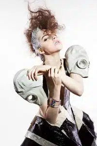 dress by Reem, necklace Atelier Swarovski by Holly Fulton, tube bangle Atelier Swarovski by Kirt Holmes, cuff bangle Atelier Swarovski by Joseph Altuzarra.