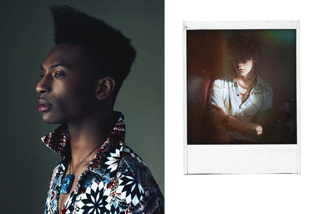 Shot 4 (Left): Mozher wears reclaimed vintage shirt via asos, necklace by Sepehr Maghsoudi______Shot 5 (Right): Tuyk wears reclaimed vintage shirt via asos, belt/necklace by Misguided, watch by Casio