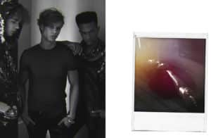 Shot 8 (Left): Tuyk wears velvet hoodie by Jaded London, leather jeans by asos. Daan wears t-shirt by asos, joggers by Sixth June, bracelet stylist’s own. Mozher wears vest by New Look, dungarees by CoolCat, scarf by ICHI___Shot 9 (Right): Tuyk wears blazer by Heart & Dagger, trousers by H&M