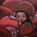 Despite the often dark, melancholic and sometimes sexual (the latter in Dirty Filthy Wonderland) themes in Red’s work, a charmingly childish and innocent side emerges in her longing for magic and fantasy. Moments of happiness – plucked from reality – are stretched out and prolonged, and darker moments are made fun of, turned into strange and sometimes amusing characters. Her life-experiences are repeatedly transformed into scenes from her “wonderland” and reality is almost entirely viewed through a fairytale looking glass.