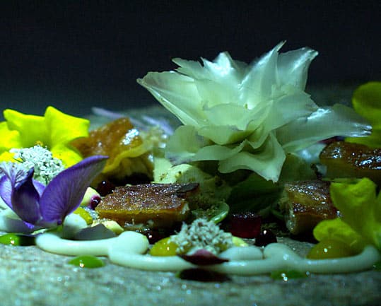 The twelve courses, each with their own ‘theme’ through which they are intended to evoke certain emotive states, are accompanied by other art forms such as poetry, projected visual imagery and robotic musicians (innovation is, indeed, at the core of the project), taking the guests – the audience, if you will – on a journey, not only through the story of the ‘opera’ itself, but a journey of self-exploration. You could, perhaps, call it intrusion at its most beautiful and sublime. ‘Acts’ of the banquet include a variety of rather engaging titles, such as ‘Space’, ‘War’, ‘The Garden of Hesperides’ and ‘Carnality’, the courses of which contain food arrangements to match their particular imageries. The cuisine for Act 9, ‘War’, for example, is Goose Royale complete with beetroot “blood droplets” and Act 7, ‘Carnality’, involves a rose theme – juice of pigeon hen breast displayed in the shape of a rose, accompanied by grilled roses and rose water droplets. Similarly, Act 4, ‘Under the Sea’ is a delightfully varied seafood platter; and the final act, ‘Awakening/Sweet Spring’, resembles a Spring landscape – a candy floss “cloud”, flowers, honey, and even butterflies. What’s more, each course is paired with a specially selected wine, each of which aspires to “stimulate new sensations”; “achieve new reactions.” Some of the wine on the menu even has not yet been distributed to the public.