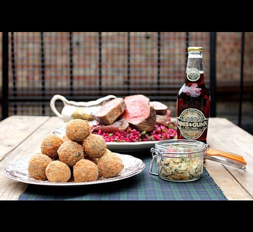 Round two of charcuterie and home-made pickles is equally impressive but the real stars are the potted mackerel and cullen skink which follow. Two large communal oatcakes accompany the delicate mackerel, a resounding success resonant of the great wilds of northern Europe; while the cullen skink is smokey and nourishing. Admittedly at this stage we are almost too full for round five, the eagerly anticipated venison haunch with pearl barley salad and bramble dressing. Venison is such a dense meat that I feel it could be served rare than it is, as it gets tough quite quickly. Perhaps that’s one of the sacrifices of communal dining. Nevertheless the bramble dressing was tart and refreshing against the sweet barley and smoked meat. The accompanying rum finished ale from Iniss and Gunn was a real treat.