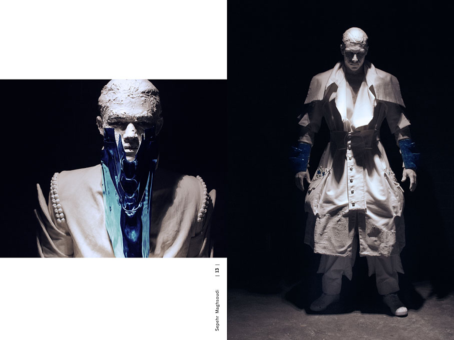 Now with his own label, show titles like ‘Intense Existence’, ‘Embrace your Darkness’ and ‘Running Through Walls’ divulge the gothic sensibility of Maghsoudi’s fashion. His collections are fairy-tale like, dramatic and confrontational. Oh – and artistic. Which is an important facet of the work of this Iranian born, dutch designer. Sepehr Maghsoudi is a cultural interpreter who gives away his concoction of inspirations and his reaction to his audience with each garment.