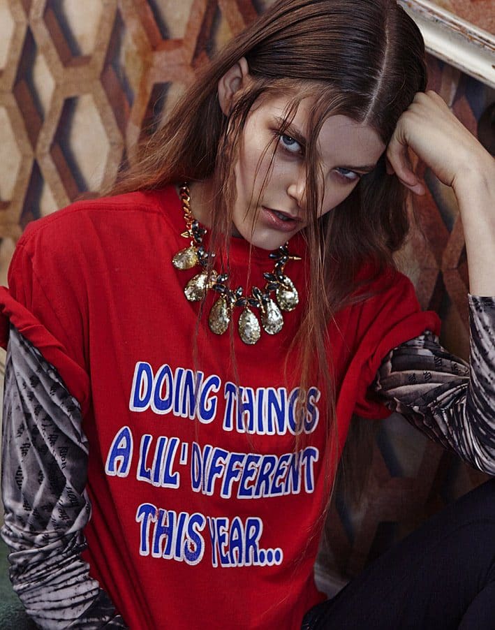 Sports Fashion: long sleeved top by Georgia Hardinge, vintage t-shirt from Beyond Retro, necklace by Mawi