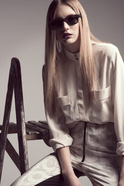shirt vintage, trousers by ANNA MOUTAFIS, sunglasses by RAY-BAN
