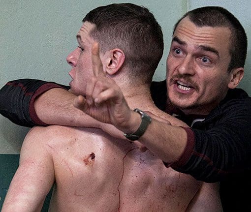 The director, David Mackenzie, has been engaging enough in the past (Hallam Foe is particularly worth catching), but here he makes a big leap forward with the help of first time writer Jonathan Asser, who used to work in the penal system; in effect in the same role as Friend. Asser’s sharply observed exchanges, especially in the group sessions where he juggles a half dozen different volatile, but fragile, characters, are what make Starred Up unique. Everyone onscreen is fleshed out in a way you rarely see in British cinema, or cinema in general. O’Connell is phenomenal, utterly convincing, showing the duality of Eric, that he’s fragile and lethal, angry and broken, with a keen intelligence under the bravado; Mendelsohn, now perpetually typecast as the rage-fueled disappointments in society’s gutter, continues to give each of his burnouts their own distinctive and warped manner; whilst Friend, best known for his forgettable one-note performance in Homeland, considerably steps up his game, which suggests he’s being underused in the American drama. There’s just one hiccup: Spruell’s Governor, who is one step away from being a full-on moustache- twirling villain. And that one step is really just the growth of a moustache for said twirling.