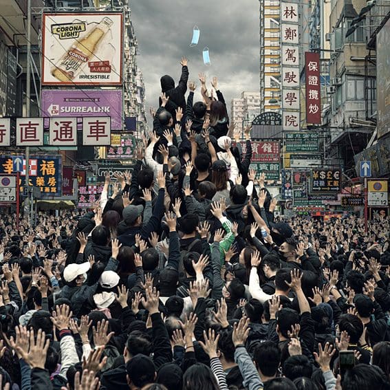 In light of the current crisis and apparent in his wider body of work, Tommy’s main inspiration is drawn from the people that inhabit Hong Kong. “Hong Kong people are fighters. This is the most expensive city in the world and people keep fighting every day to have a place to live and eat. People fight when they see the democracy is being threatened and people fight when the government unfairly treats its citizens.” Balancing the social commentary with an element of light-heartedness that surrealism often can display, Tommy points to his upbringing in Venezuela, “Comedy is part of the personality of Venezuelan people. They can make jokes even in the most difficult situations, always looking at the positive side, as do I. Now I apply that in my artworks to try make people laugh.”