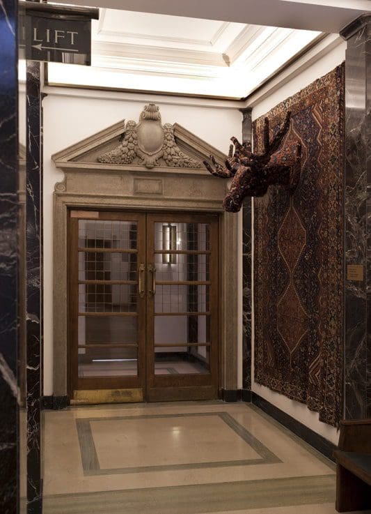 As the rest of the hotel, the restaurant boasts pockets of art installations, intermingled with the traditional ‘remains’ of the grand, 20s style, hotel. The far wall is host to a hanging light display, while opposite stands a beautifully intricate black spiral staircase that reaches up to the high ceilings of the Edwardian mansion. There is also a grand marble fireplace which, all combined, forms a truly sumptuous setting evoking feelings of faded grandeur and the decadence of eras past, yet the bursts of appropriated modern and contemporary art, far from seeming juxtaposed, work seamlessly in providing a wonderfully refreshing and uniquely alternative dining experience.