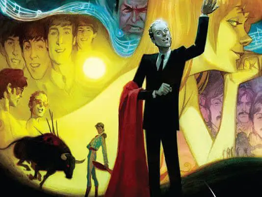 Kyle Baker’s section is a period in The Beatles career where things were… The way that I looked at it is they became cartoony. They went to the Philippines and they inadvertently snubbed Imelda Marcos (first lady of the Philippines). She pulled their security and they literally had to rush out of the country on a jeep, chased by the Pilipino army. It was crazy, and whilst all this was happening America caught wind of John Lennon’s, “The Beatles are bigger than Jesus now”, and so they came back to find people burning Beatles albums in the United States.