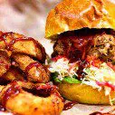 My partners ‘sixteen-hour slow-cooked pulled pork, candied apple bacon, slaw and salad’ had a similarly top-heavy look to mine. Despite my taught stomach I tried a few bites and the rich, drippingly moist pulled pork tingled my tastebuds in a way the majority of similar pretenders have failed to. The intensely-flavoured bacon just added to the melee going on in my mouth. My only major gripe again is how unbelievably sweet the whole thing was. Fig and vanilla bun, candied bacon and Memphis-style BBQ sauce says it all really.