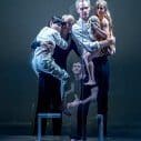 Against this thematic complexity, the production’s mise en scene is sparse: in the foreground, a bare dinner table. In the background, what looks like an expensive marble bathtub. And dividing the two, a partition of glass that operates almost like magic: ping, a flash of light, and it’s transparent. Ping, a flash of light, and it’s opaque, its reflections allowing the cast to occasionally break one of the cardinal rules of theatre and face away from their audience.
