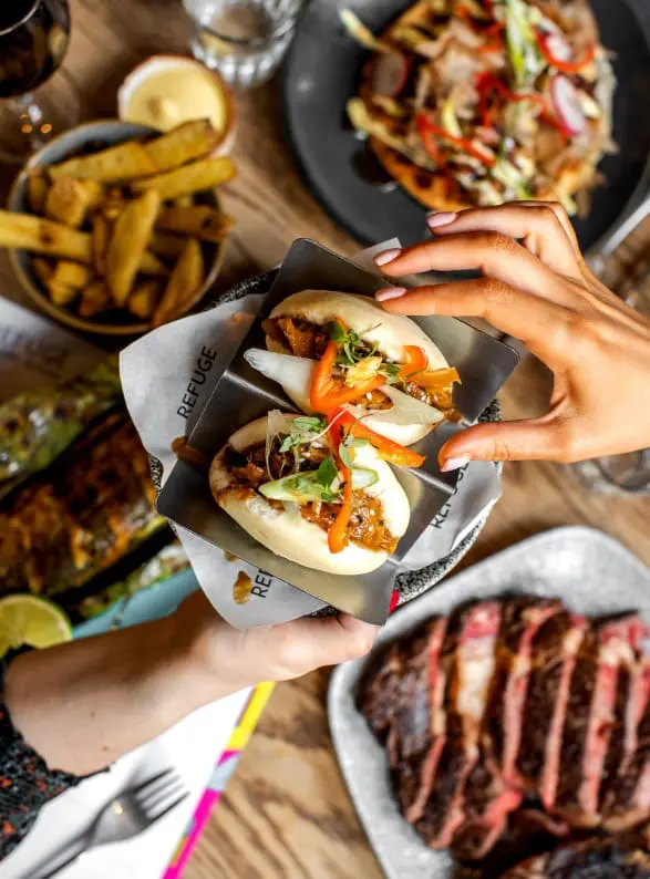 I was then a bit taken aback as I first entered the space. The music was pounding in the bar area which was packed out with Saturday night revellers. The band, A Certain Ratio were being played as we walked through, making me feel right at home. We made our way to The Refuge eatery where we were greeted and led to a cosy looking booth. Our waitress settled us down in a friendly and helpful way, and we were left to ruminate on our choices.