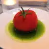 Creativity is certainly on show at Persijn, QO’s restaurant. Here on the ground floor, the zesty produce of the greenhouse is transformed into colourful bursts of flavour. A blanched tomato, glowing red, sits in a lime-green pool of basil oil. Press a fork into its skin, and ribbons of mozzarella tumble out. A fillet of plaice is partnered by parsnip cream, endive and parsley oil.