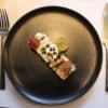 Not that they don’t take their food seriously. Aubergine mousse is accompanied by a silky red pepper coulis and shaved egg yolk. That’s shaved egg yolk: InStock’s chefs cure and cook it at a low temperature, resulting in egg with the consistency of parmesan. Dried ricotta is made using the leftover coffee foam from InStock’s cafe.