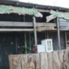 We step into De Ceuvel’s cafe. Everything has been salvaged or repurposed, from the chandeliers made from bicycle wheels to tables made from recycled parquet flooring.