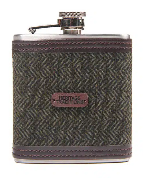 • Accessorise it up. You can create a variety of looks with the same key pieces and colours when you add or change accessories for different occasions. Simply swapping out a functional handbag and adding a stylish clutch will style up your look, and adding statement jewellery can enable you to move from a working day to an evening out with no hassle at all. We have a wide range of stunning scarves, from soft cashmere to woollen gypsy style, as well as irish hats embellished with felted flowers and ties, bow ties and pocket squares to really bring your look up to date. Our hot tip for the forthcoming festive season is our Tweed Hip Flask, the perfect gift for anyone – especially a man who is notoriously tricky to buy for!