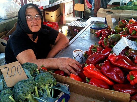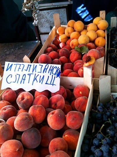 Yes, I am a vegan and it might seem I came to the wrong place; Serbia is a meat-hungry nation. Every day my bus passes a poster featuring a thrice life-size, flayed sheep, head and popping eyeballs and all, stretched on a pole advertising barbecue cuts, and when I order salads, I am usually told that tomatoes are more expensive than beef – “have a burger!” they say. The good thing is, Belgraders love fruit and vegetables too. Markets here feature stall after stall of cheap, plentiful and automatically organic produce – it’s never been grown any other way. They do import things, and you can get most familiar ingredients, but after accidentally paying nearly four quid for an avocado, I decide to stick with what is grown nearby – and there’s plenty of that. It’s usually picked that morning and is all beautifully arranged: rows of fluffy peaches upturned like baby’s bottoms, black grapes, still with a deep bloom and leaves attached, and heaps of peppers, different varieties arranged just so. The stall holders tut and dart out from their perches to repair any disarray you might rudely cause in searching for the very best specimens.